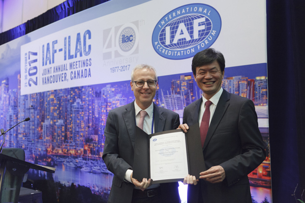 近日,在國際認可論壇(IAF)和國際實驗室認可合作組織(ILAC)2017年聯合年會上,中國合格評定國家認可委員會(CNAS)秘書長肖建華代表CNAS與IAF簽署了信息安全管理體系多邊互認協議,標志著我國的信息安全管理體系認證認可制度正式加入IAF多邊互認體系。